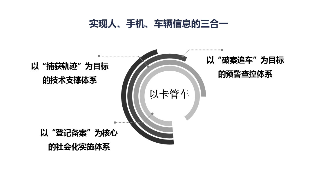 “电动车防盗系统”是一个完整的体系,以包括“捕获轨迹”为标准的技术支撑体系,以“登记备案”(车辆、车主信息录入)为核心的社会化实施体系,以“破案追车”(实时轨迹掌握与第一时间进行车辆预警)为目标的查控体系,这三大体系的建设为主要内容,涉及立体防盗、精准打击等多种具有实践成效的成功案例作为支撑。二轮电动车的登记备案,通过安装防盗装置(内置GPS芯片、加装“防盗备案号牌”),在车辆被盗后通过轨迹追踪,实现追车破案。电动车防盗设备安装后,车主手机通过下载的APP可以进行自主的撤布防;发现车辆被盗后,可第一时间报警确认车辆丢失。警方在平台监控车辆,预警、出警、侦破等均在第一时间完成。硬件、平台、软件构成了一个完整的管理体系。